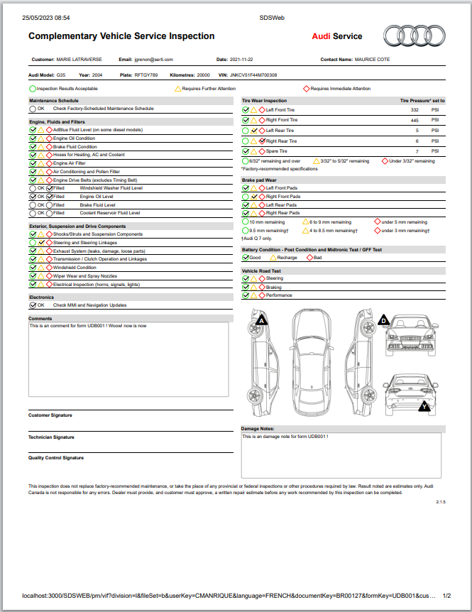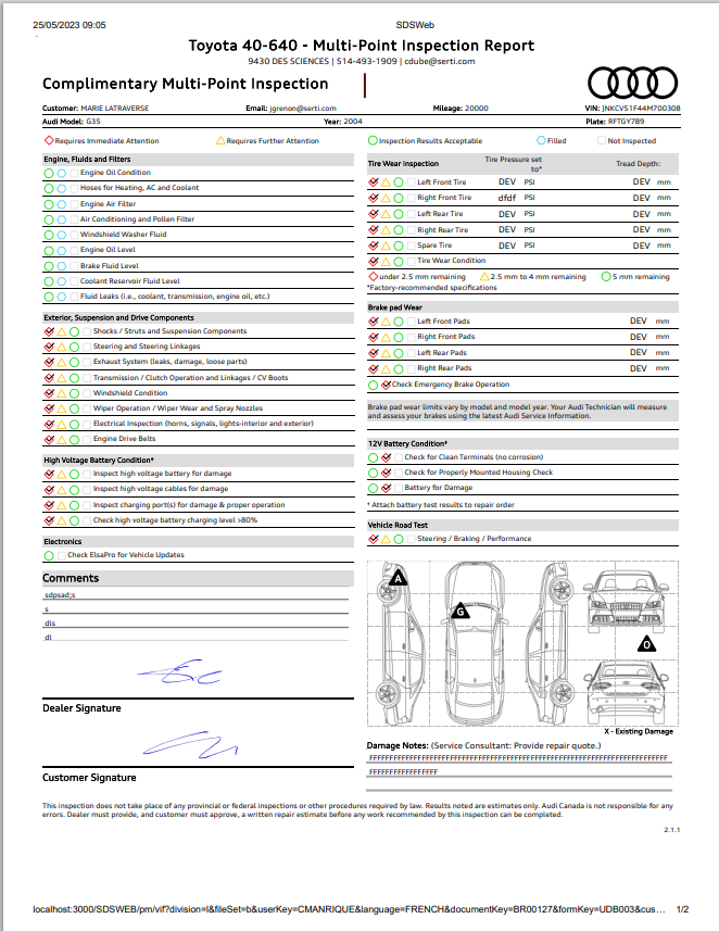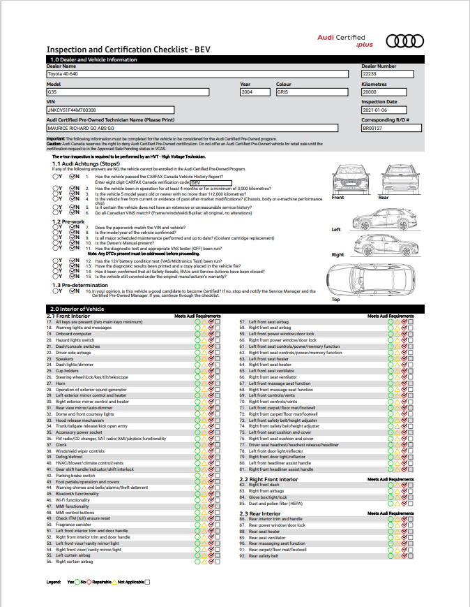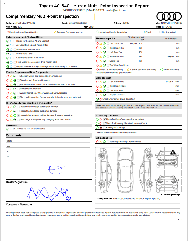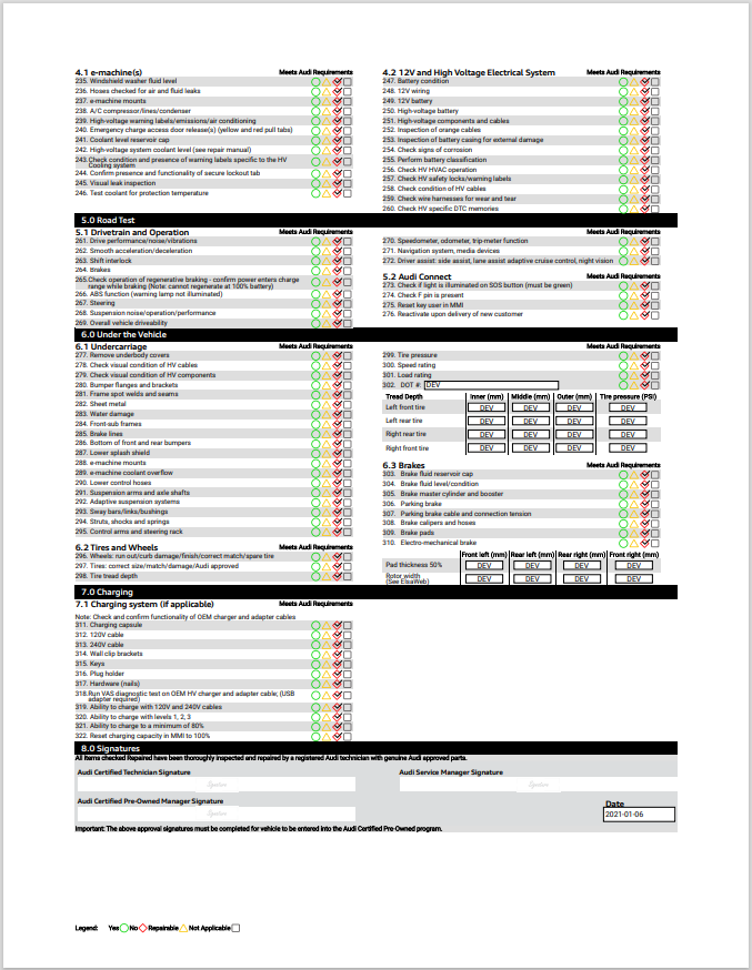 e-tron Multi-Point Inspection Report