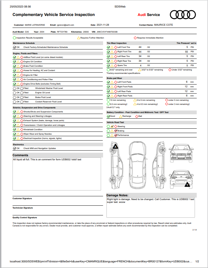 Complementary Vehicle Service Inspection