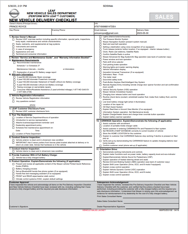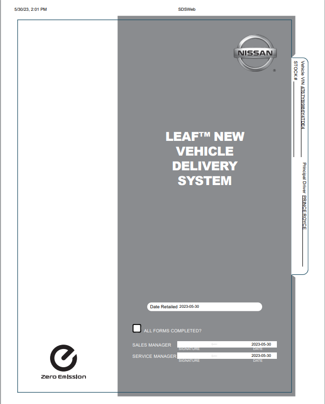 Leaf New Vehicle Delivery